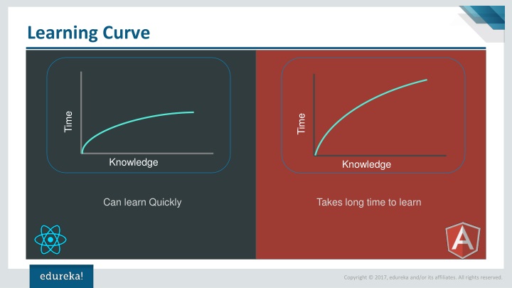Reactjs allows you to quickly learn and develop a mobile app in the React framework if you are well-versed in JavaScript. ReactJS provides various constructive resources and assets to the developers to get familiar with the framework and develop an application with the same. It is for these reasons; developers tend to choose to React over Angular. So it’s clear that in React vs. Angular based on the Learning Curve, React is better than Angular.