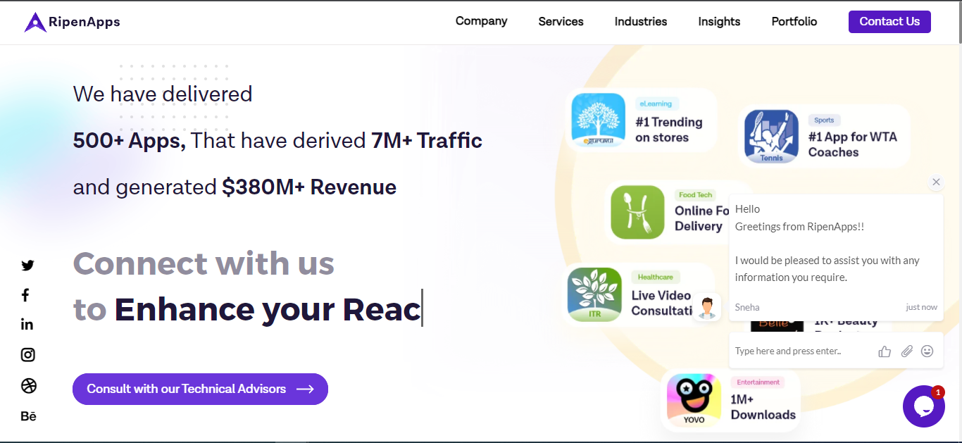 Since its inception in 2017, RipenApps has gained a unique position globally with its vast expertise in mobile app development technologies. It has designed and developed 500+ mobile and web apps, out of which many apps are creating buzz and have become hot-seller (Top Trending and Gigantic download counts) apps on app stores and Play Store.